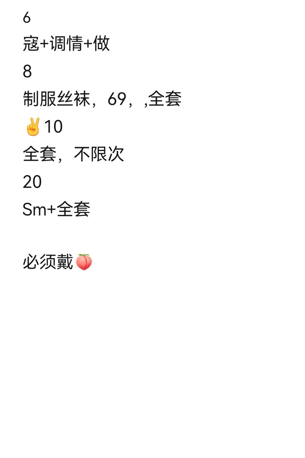 600一次,800全套,一千包夜,两千能sm